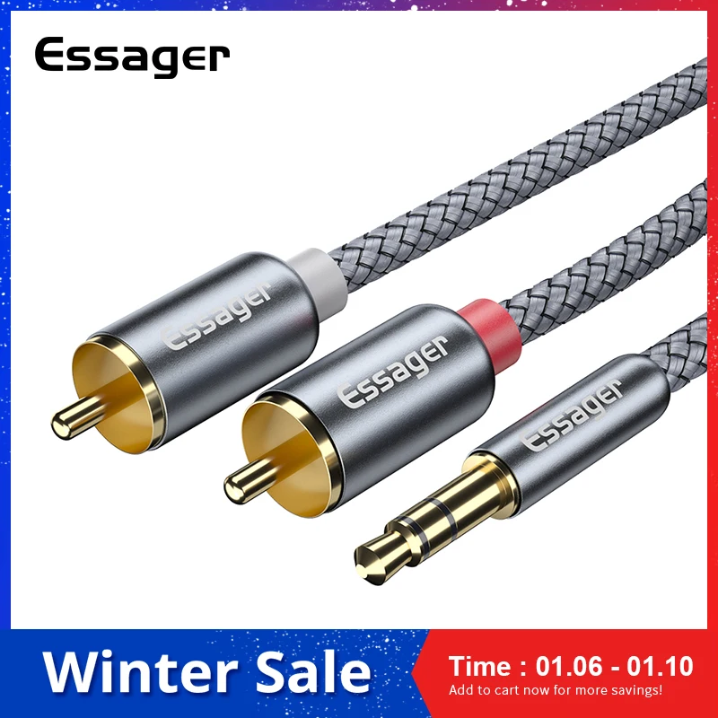 New Essager RCA Audio Cable Jack 3.5 to 2 RCA Cable 3.5mm Jack to 2RCA Male Splitter Aux Cable for TV P
