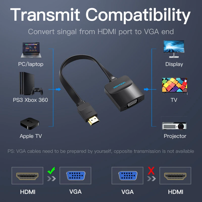 Best Vention HDMI to VGA adapter Digital to Analog Video Audio Converter Cable 1080p for Xbox 360 PS3 PS