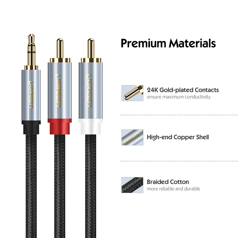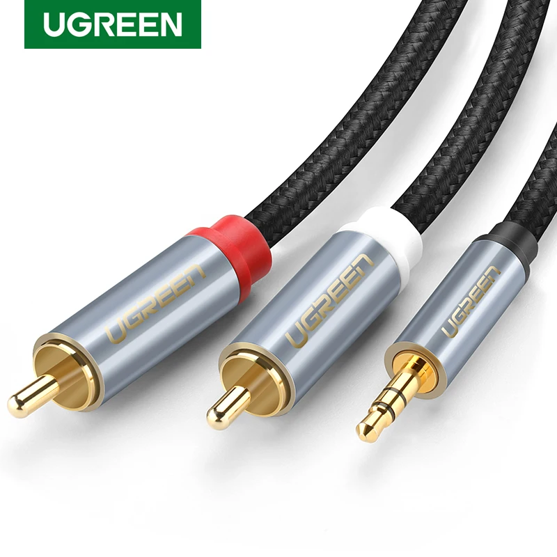 Promo Ugreen RCA Audio Cable 2RCA Male to 3.5mm Jack to 2 RCA AUX Cable Nylon Braided Splitter Cable for