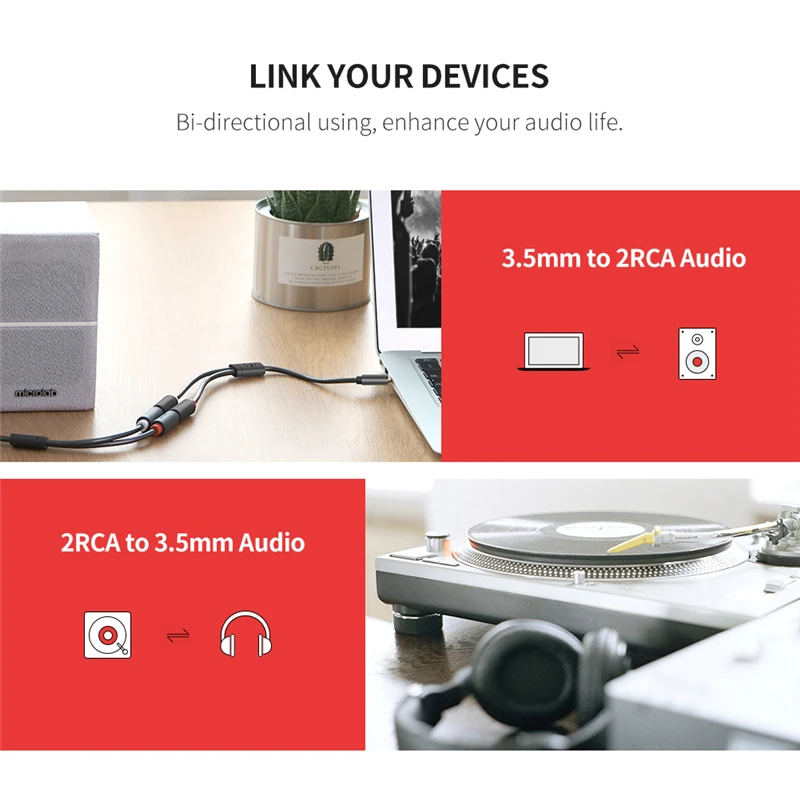 Best Ugreen 3.5mm Male to 2RCA Female Jack Stereo AUX Audio Cable Y Adapter for iPhone MP3 Tablet Comput