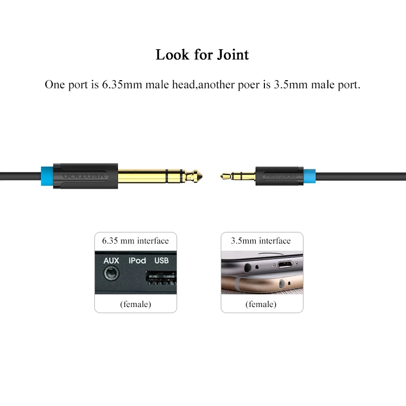 Best Vention 3.5mm to 6.35mm Adapter Aux Cable for Mixer Amplifier Gold Plated 3.5 Jack to 6.5 Jack 3m 5