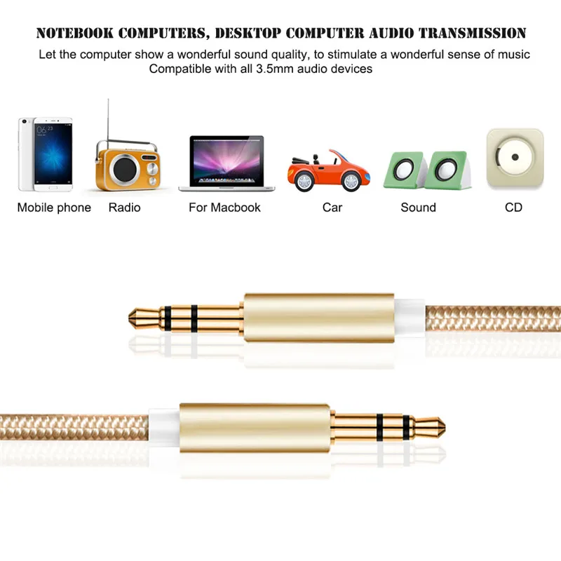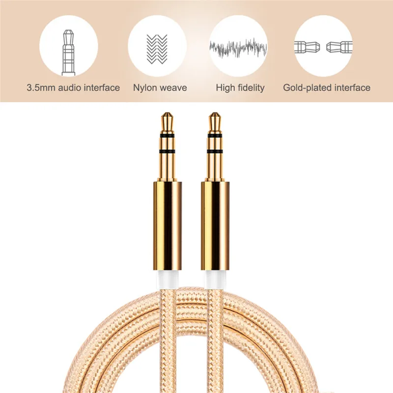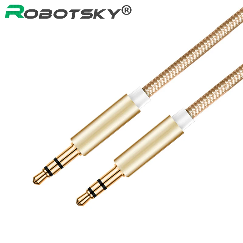 New Robotsky 3.5mm Audio Cable Nylon Braid 3.5 Jack Male to Male Car AUX Cable for Phone MP3 MP4 Headph