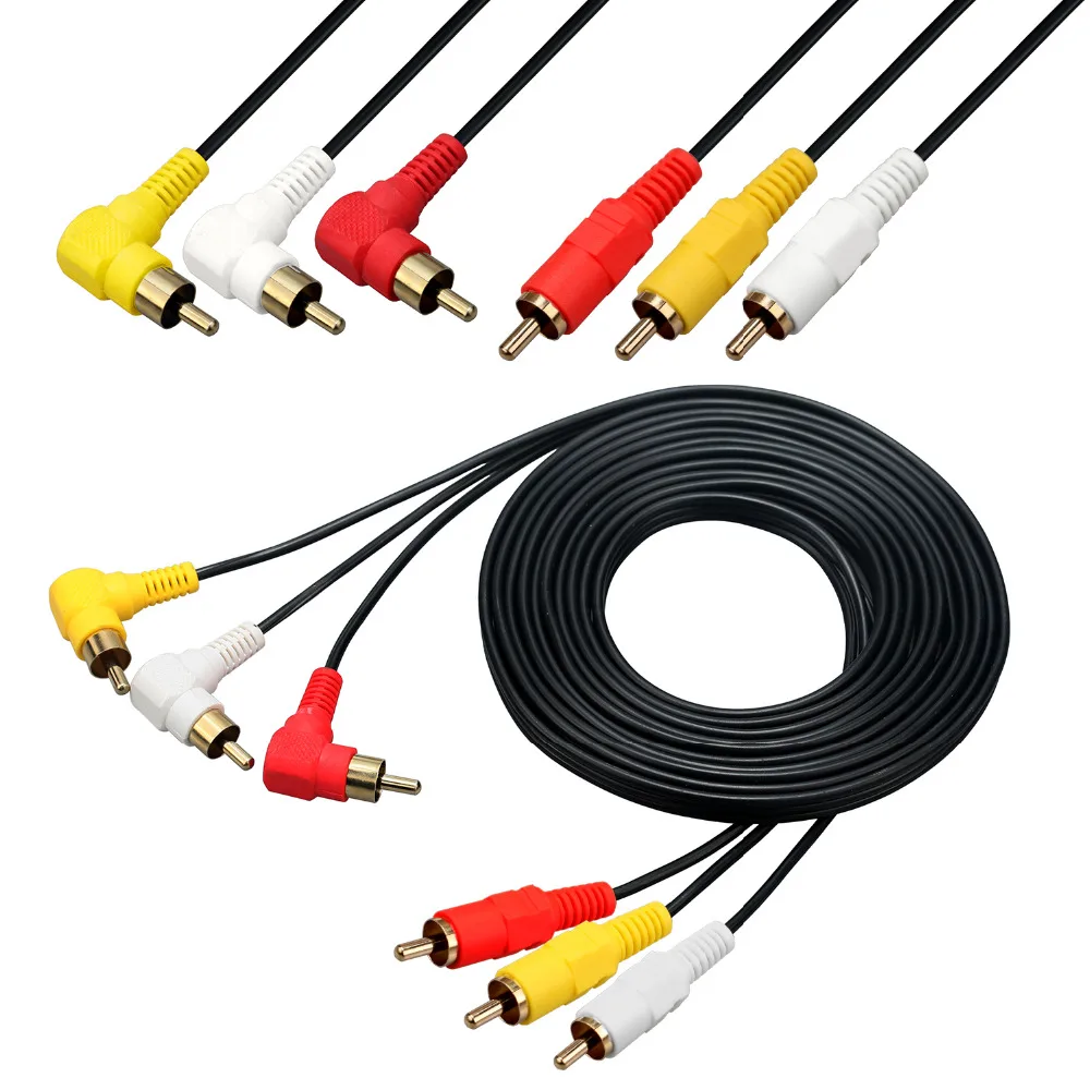 New 3 RCA Cable - Premium Gold Plated 90 Degree Right Angle RCA Audio / Video Cable 3 Male To 3 Male Co
